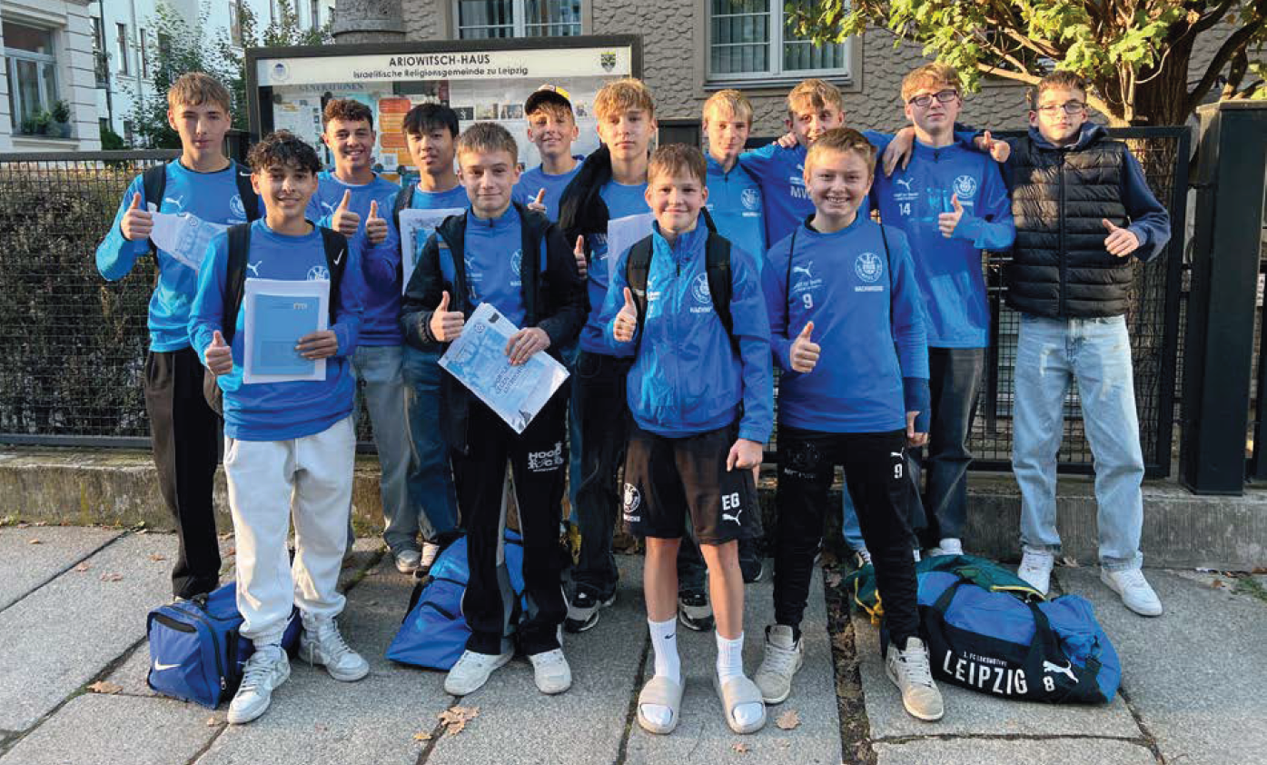 Mannschaftsfoto der U15-Jugend von LOK Leipzig beim Besuch des Ariowitsch-Haus in Leipzig